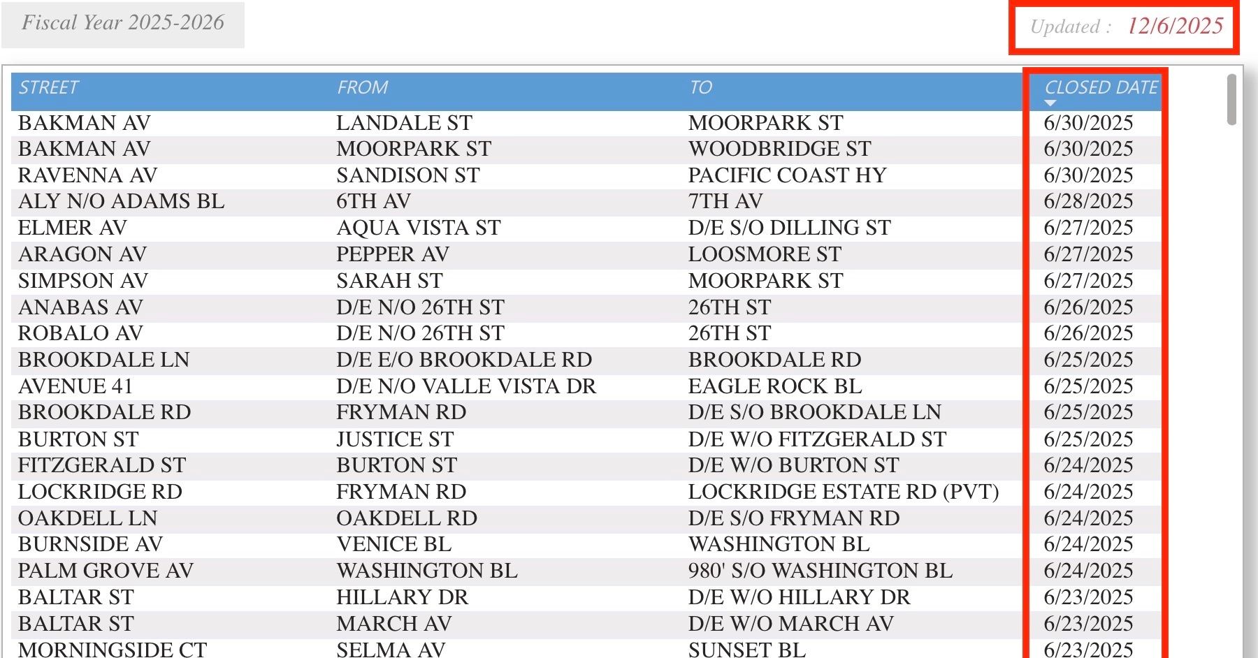 StreetsLA has resurfaced exactly zero miles since July 1st. And they stopped pretty abruptly - their list of resurfacing work completed has lots of projects leading right up to June 30th, and then nothing. Notice the list is updated as of last week.